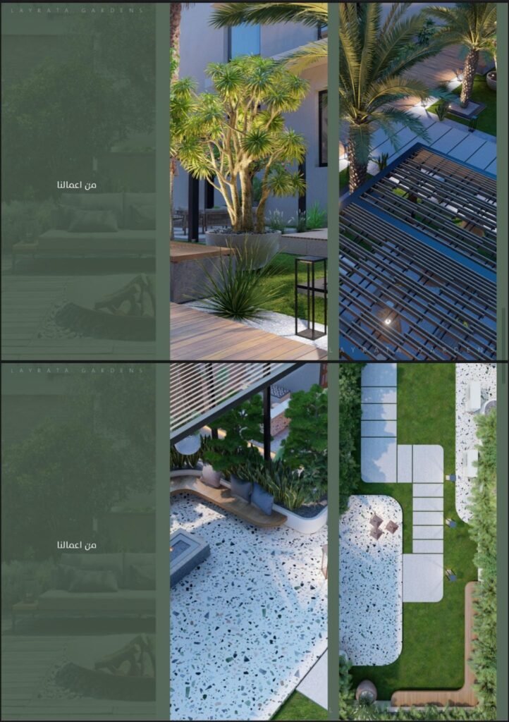 - تصميم وتنفيذ الممرات والبرجولات والمسطحات الخضراء وأحواض الزهور.