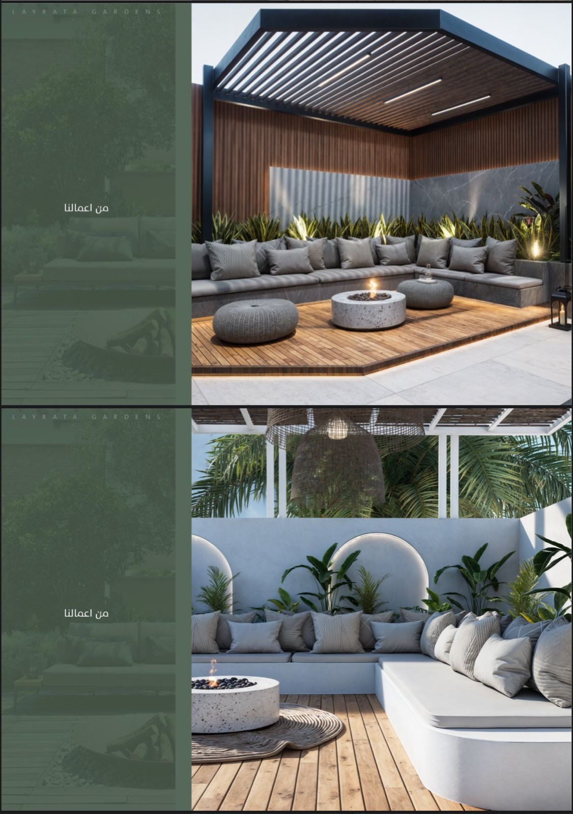 - تصميم وتنفيذ الإضاءة الخارجية والجلسات الخارجية.